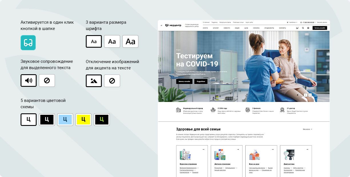 - соответствует стандартам Версия для слабовидящих, раздел с сертификатами и карта сайта